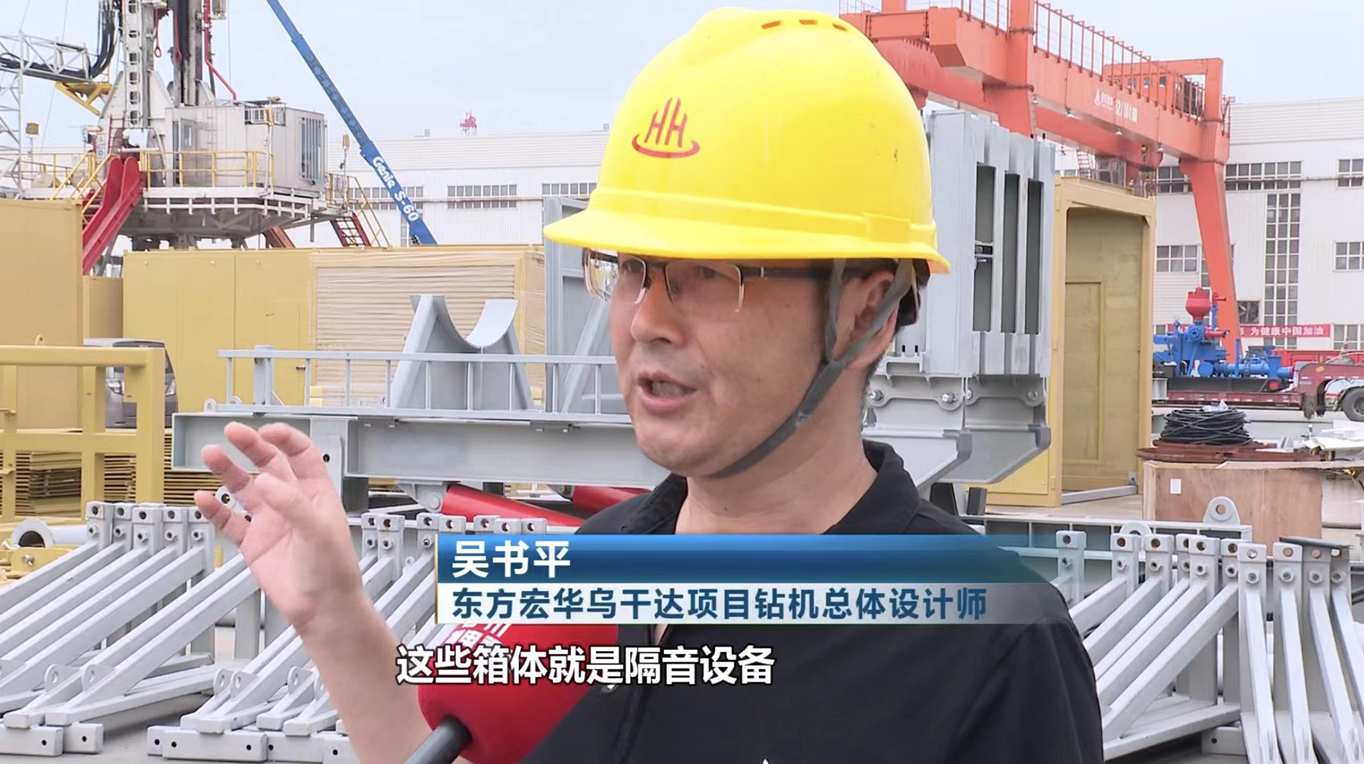 “你看这些集装箱一样的隔舱就是我们做的隔音步伐 ,凭证划定可以将噪音控制在五十分贝内 ,这是什么看法呢?我们正常讲话的音量在四十分贝左右 。”东方宏华乌干达项目钻机总体设计师吴书平说 。