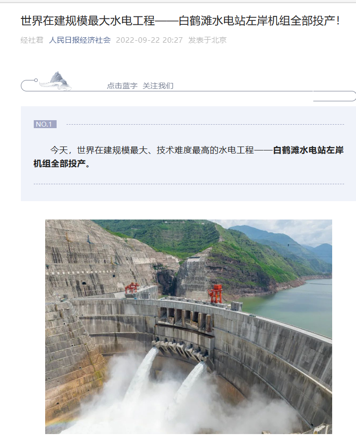 [人民日报]天下在建规模最洪流电工程——白鹤滩水电站左岸机组所有投产!