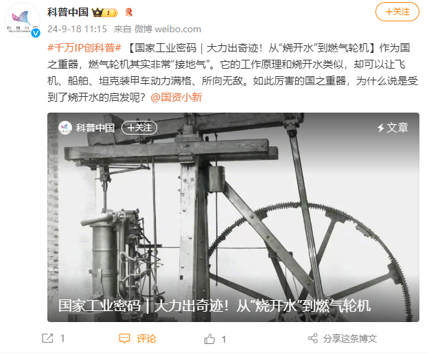 [科普中国]国家工业密码|鼎力大举出事业!从“烧开水”到燃气轮机