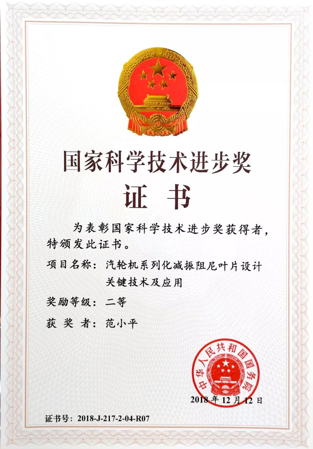 他主持完成的“汽轮机系列化减振阻尼叶片设计要害手艺及应用”项目荣获2018年国家科学手艺前进奖二等奖。同时,他主持的多个项目先后获得四川省科技前进奖、中国机械工业科学手艺奖等7项省部级以上奖项。