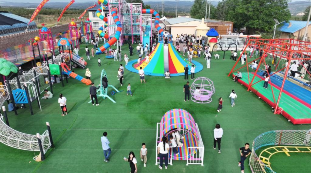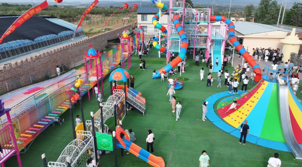 2021年,东方锅炉聚焦上东村“城郊型墟落”奇异优势,精准擘画出“一轴三区九组团”的农文旅融合生长蓝图:以墟落振兴为轴心,打造亲子体验、乐种田园、上东乡愁三大特色片区,结构儿童游乐、农业采摘、休闲旅行等九大焦点项目,为上东村量身定制可一连生长路径。锚定目的真抓实干,上东蓝图照进现实。东方锅炉陆续投入帮扶资金,支持上东村建成吉县首个户外大型儿童乐园,彩虹滑道、蹦蹦云等设施成为县域“网红打卡地”。以儿童乐园为引擎,星空露营基地、生态采摘园、萌宠互动区等业态相继落地,逐步形成“吃、住、游、购、娱”全链条工业矩阵。上东村实现了华美蜕变,2022年,入选市级墟落振兴树模村;2023年,获评省级特色工业帮扶基地;村整体收入一连四年突破百万元,真正实现“小乐园撬动大工业”。