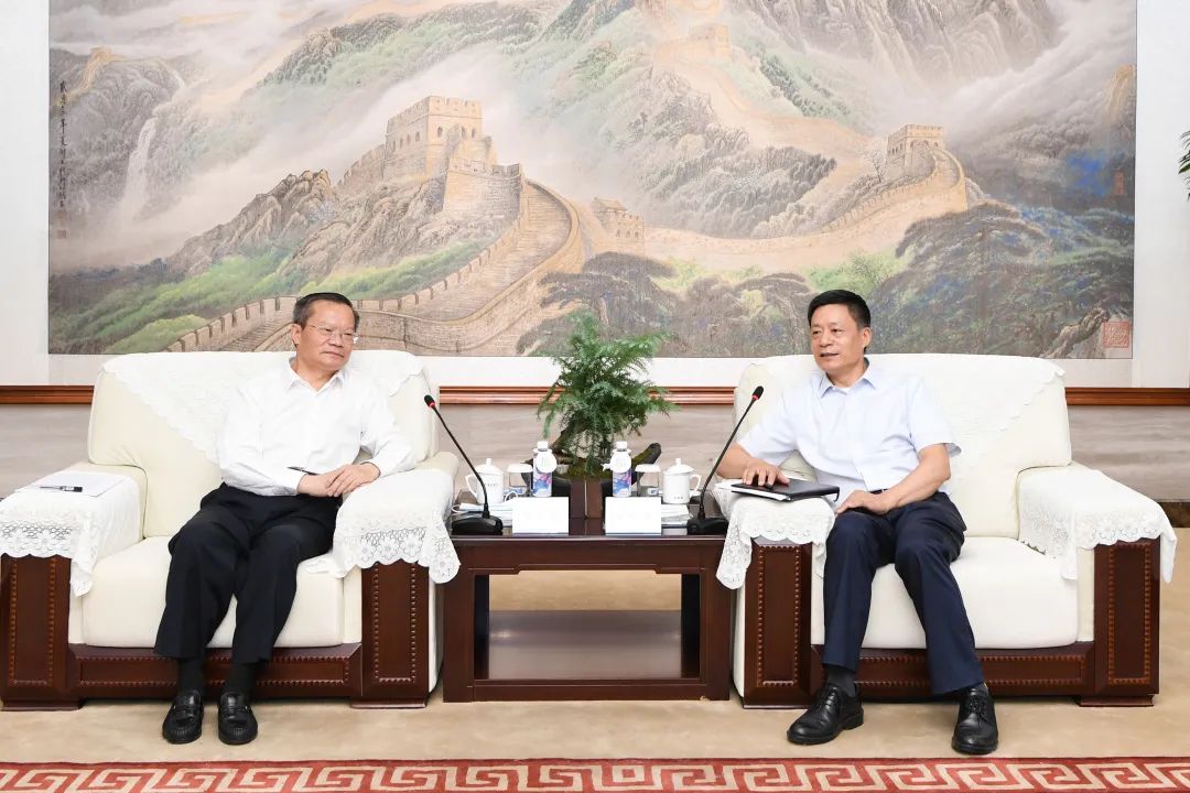 本网讯 8月19日,贵州省委常委、贵阳市委书记、贵安新区党工委书记胡忠雄率队会见yl23455永利集团,受到集团公司党组书记、董事长俞培根的热情接待,双方举行了深入交流。