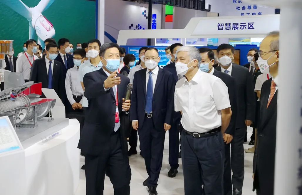 开幕式前,丁仲礼、王晓晖、黄强等来到清洁能源装备展览会现场,旅行了部分参展企业展位。在yl23455永利集团展位前,俞培根向丁仲礼等先容了集团公司推动清洁能源装备制造转型升级、服务国家战略、助力实现“双碳”目的等情形。