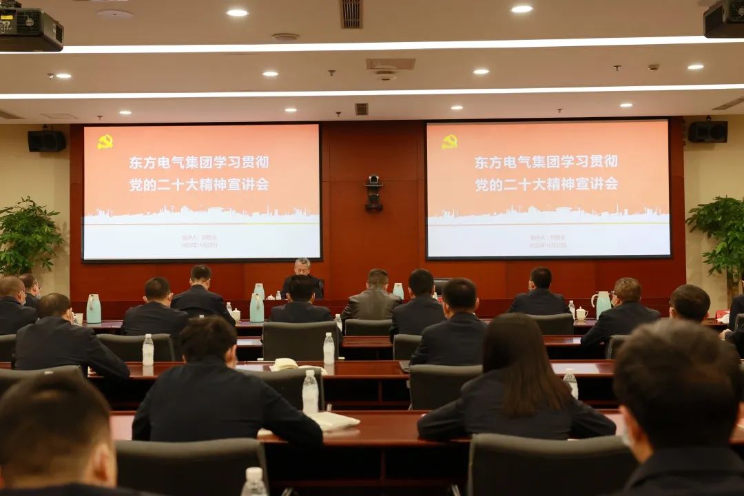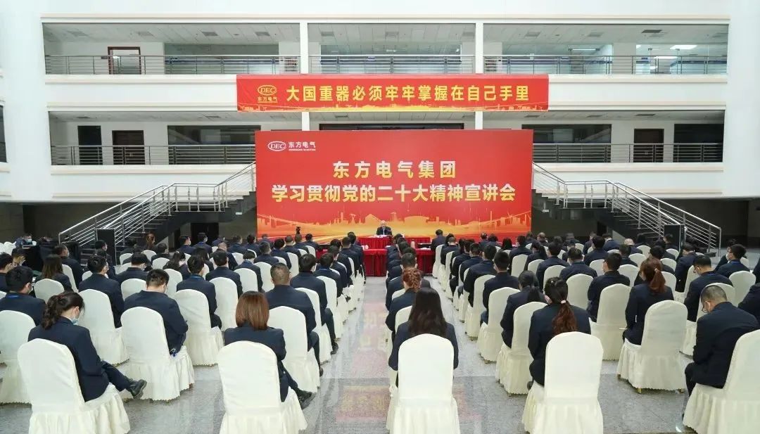 11月22日,集团公司党组副书记、总司理徐鹏深入“重器”研发一线,为东方汽轮机党员干部职工宣讲党的二十大精神。