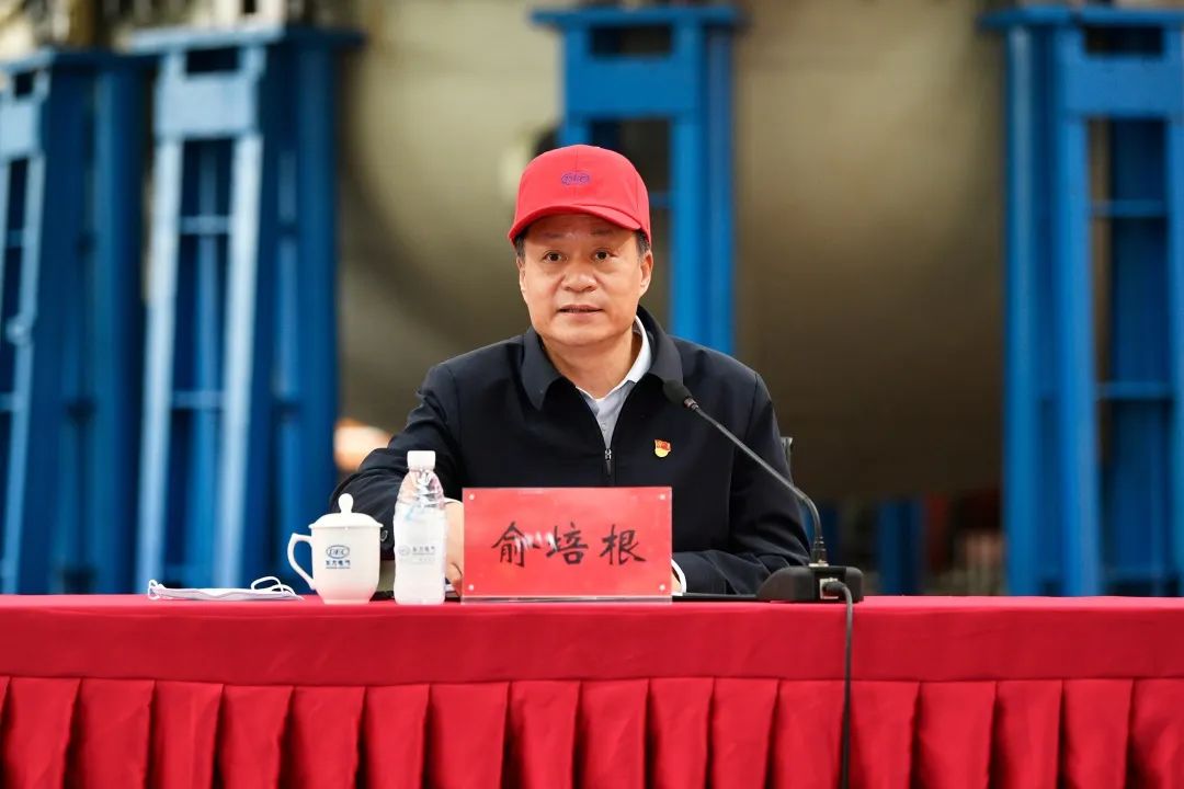 11月10日,党的二十大代表,集团公司党组书记、董事长俞培根深入“绿色智造”一线,为东方电机党员干部职工宣讲党的二十大精神。