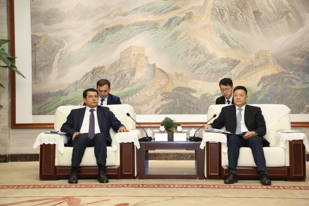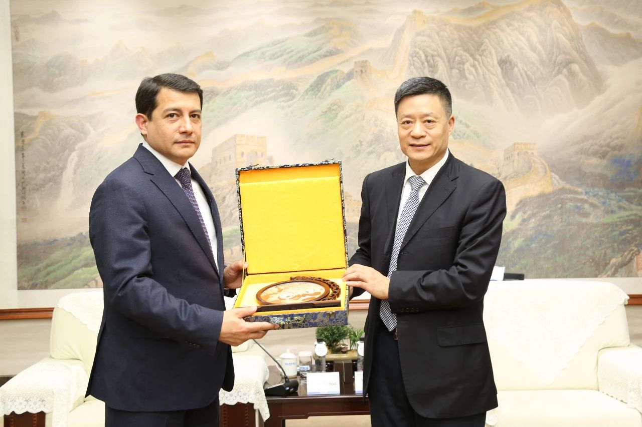本网讯 3月17日,乌兹别克斯坦驻华大使法尔霍得·阿尔济耶夫一行会见yl23455永利集团,受到集团公司党组书记、董事长俞培根的热情接待。集团公司党组副书记、董事宋致远,四川省外事办公室副主任李辉陪同加入。
