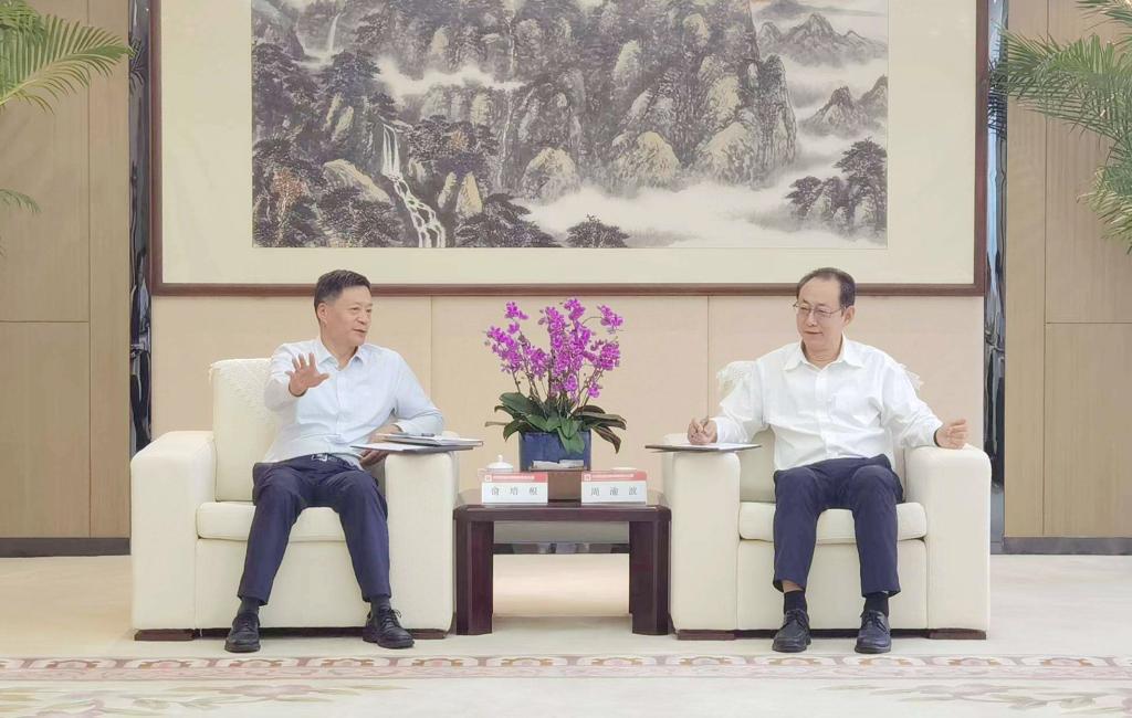 本网讯 9月1日上午,yl23455永利集团党组书记、董事长俞培根率队会见中国国新控股有限责任公司,与中国国新党委书记、董事长周渝波举行友好谈判,双方就进一步增强交流合作,携手增进实体经济高质量生长等方面举行了深入交流。yl23455永利集团党组成员、副总司理李忠军,中国国新党委委员、副总司理王豹加入座谈。