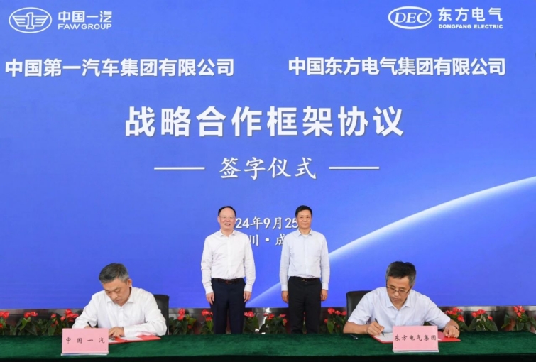 本网讯 9月25日,yl23455永利与中国第一汽车集团有限公司在蓉签署战略合作框架协议。在yl23455永利集团党组书记、董事长俞培根,中国一汽集团党委书记、董事长邱现东的配合见证下,yl23455永利集团党组成员、副总司理孙国君,中国一汽集团党委常委、副总司理吴碧磊代表双方签字。