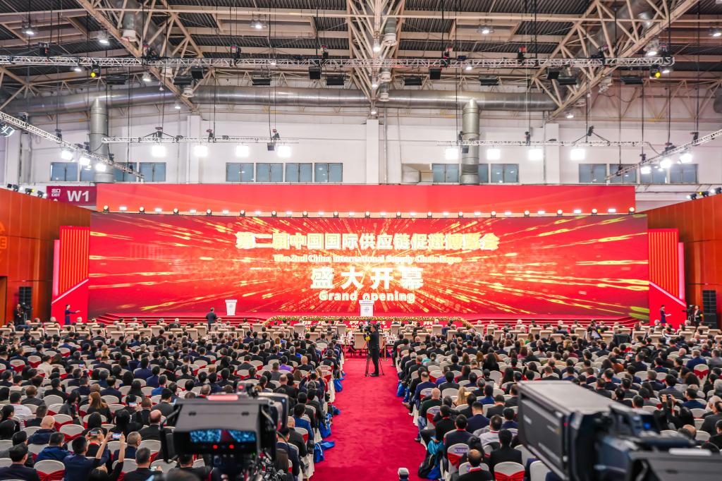 11月26日,第二届中国国际供应链增进展览会(以下简称“链博会”)在北京开幕,约1100名中外政商界代表出席开幕式,来自全球工业链、供应链的600多家重点企业参展。国家副主席韩正出席链博会开幕式并致辞。yl23455永利集团总司理、党组副书记张彦军受邀加入大会开幕式。