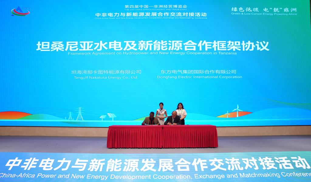 在效果宣布及项目签约环节,东方国际与坦桑尼亚Tangulf Nakatuta Energy Company Limited(TANECO)公司签署《坦桑尼亚水电及新能源合作框架协议》,双方将施展各自行业优势,助力非洲能源绿色升级 。